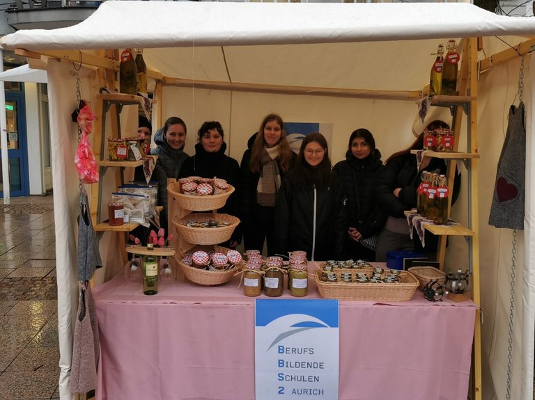 Ein weiteres erfolgreiches Projekt des Bereiches Ernährung und Hauswirtschaft ist der Verkauf von selbst hergestellten Produkten, z.B. Marmeladen, auf dem Auricher Wochenmarkt jeden Dienstag im Frühjahr bis zu den Sommerferien durch die Berufseinstiegsschule Klasse 1 Ernährung und Hauswirtschaft mit den Fachpraxislehrkräften.